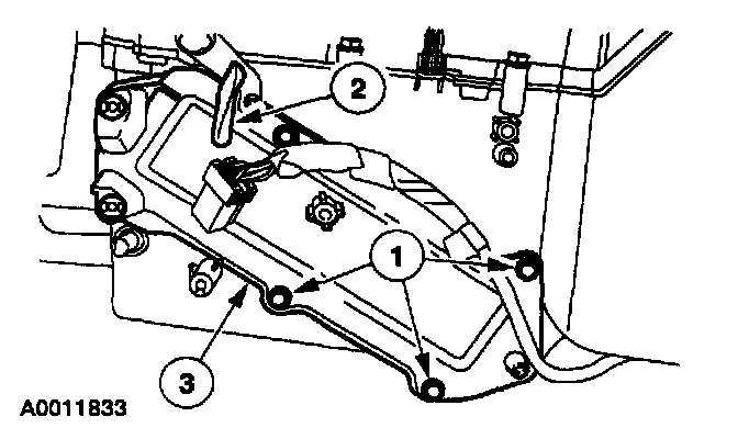 2 Remove the two nuts. Disconnect the vacuum harness.