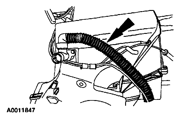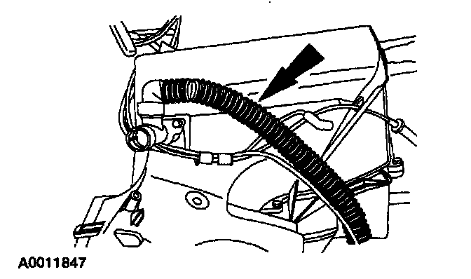 17. Note the vacuum harness and wiring harness routing. Remove the vacuum harness and wiring harness.