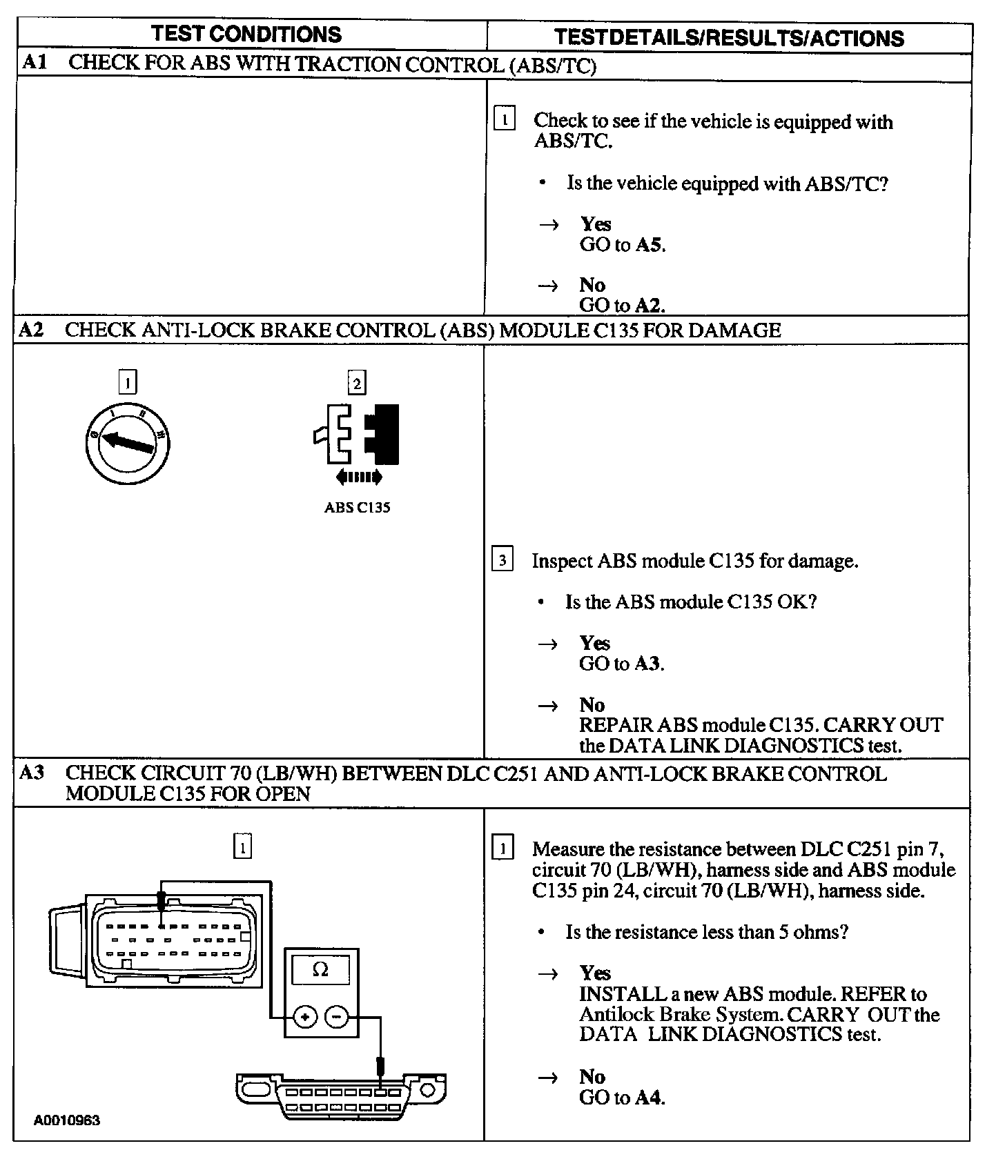 Test A: ABS Control Module Does Not Respond to the Scan Tool