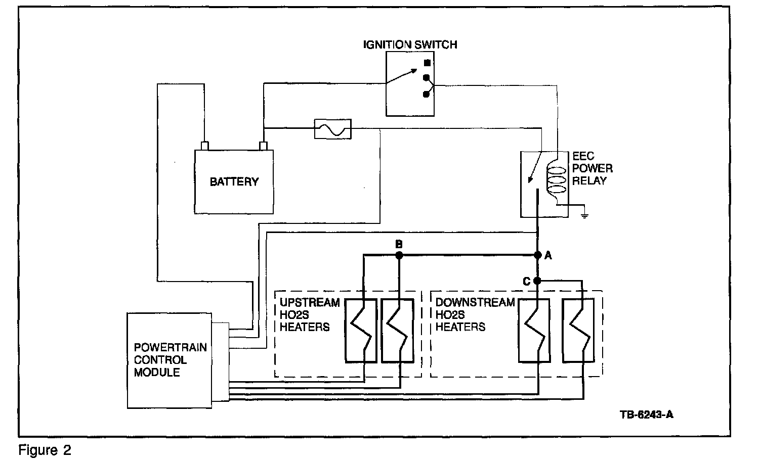 In this example, the most likely cause of DTCs P0135 and P0155 (with no other DTCs present) would be a concern with Splice "B" (refer to Figure 2).
