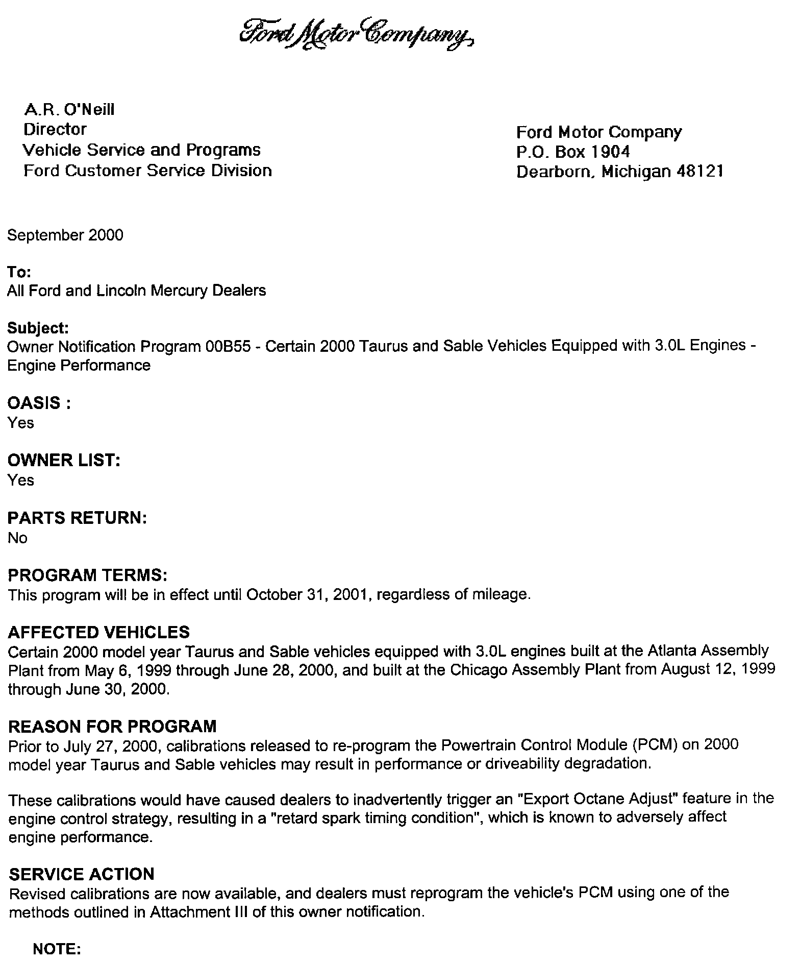 Dealer Letter