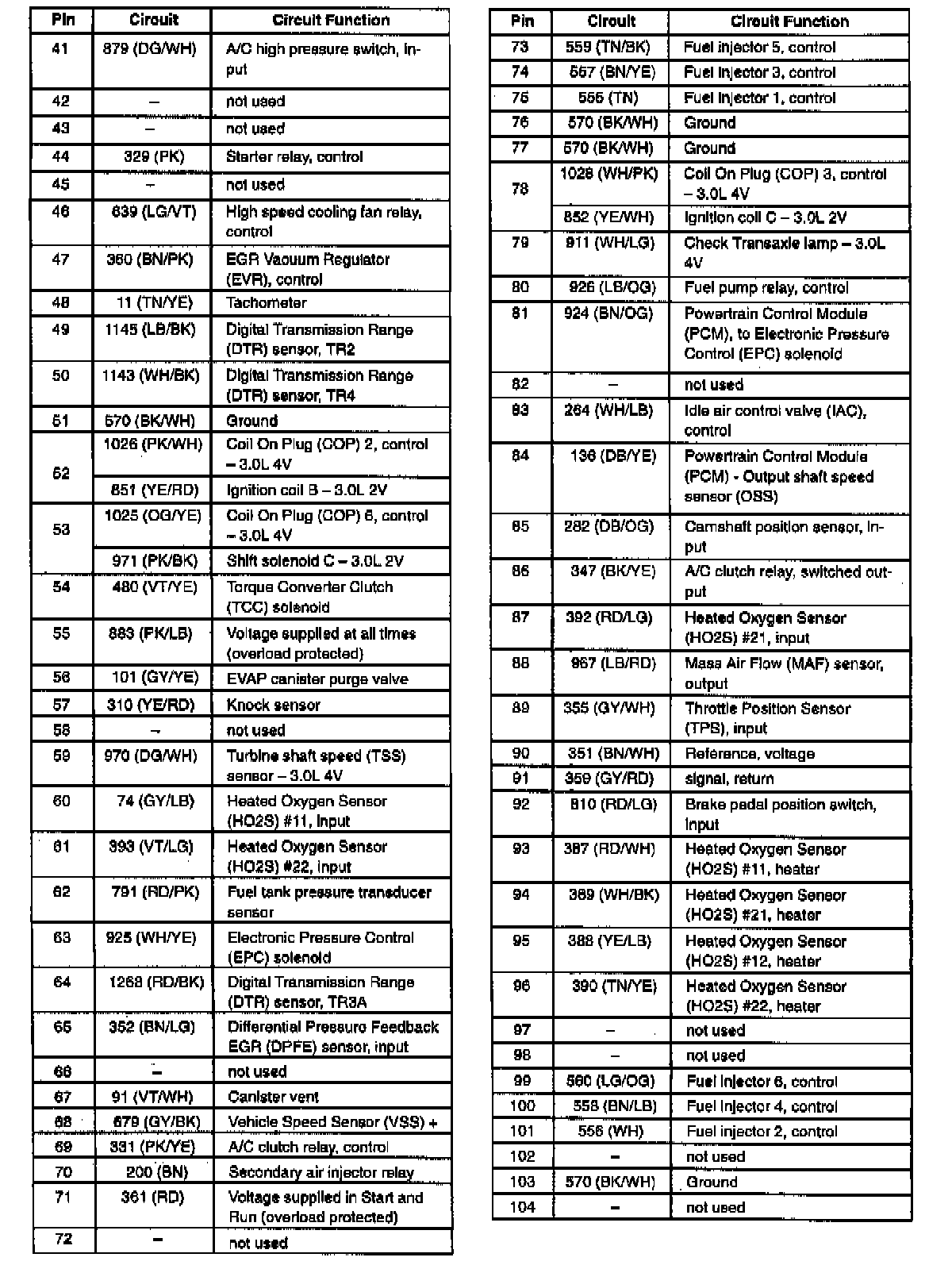 Sable V6-3.0L VIN U