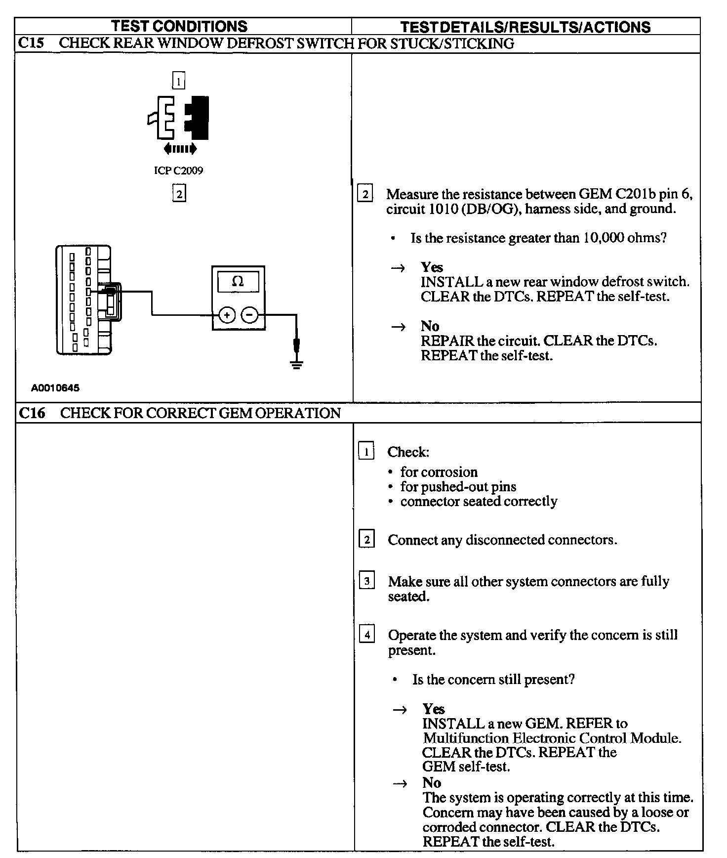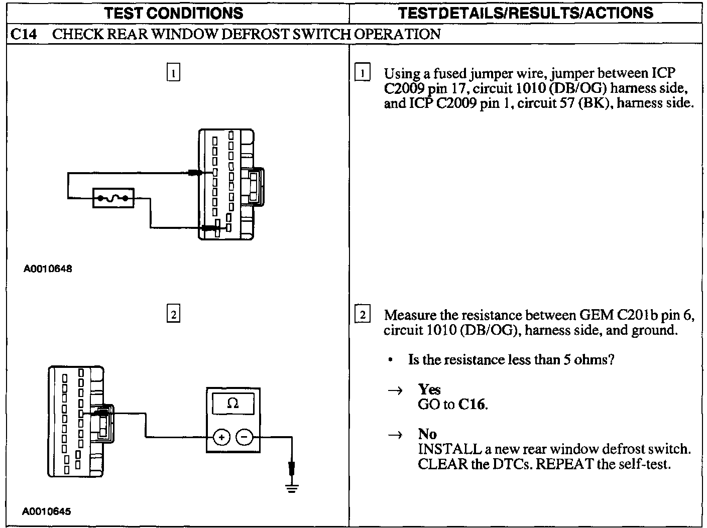 Test C: Defrost System Is Inoperative