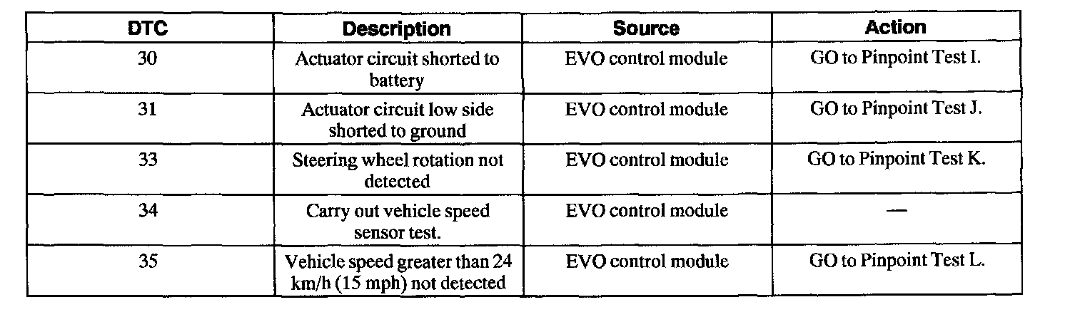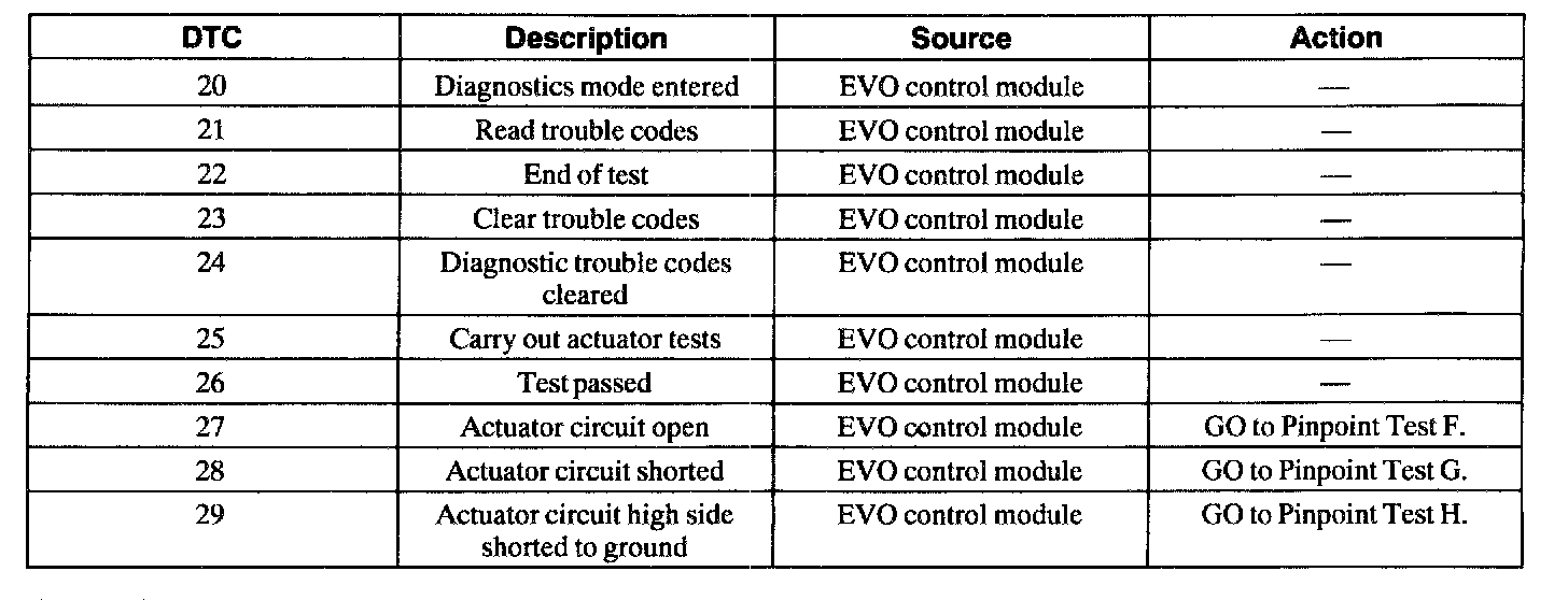 EVO Control Module Diagnostic Trouble Code (DTC) Index