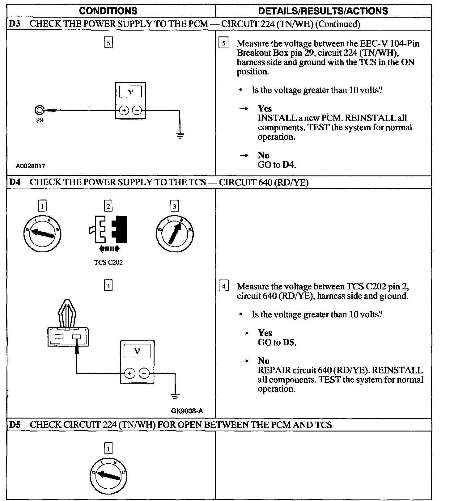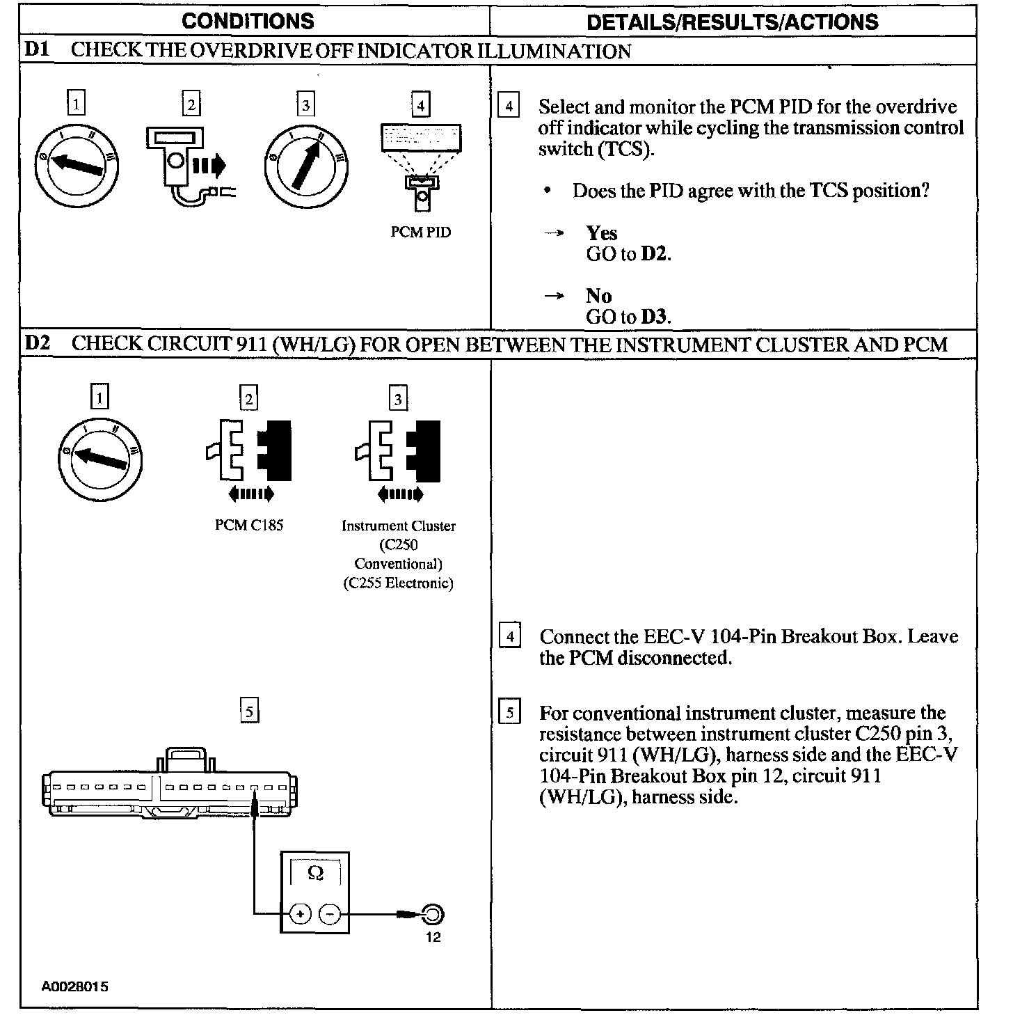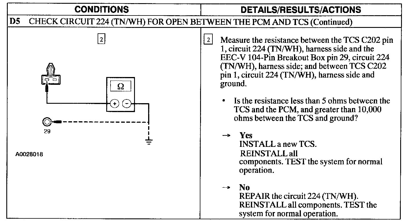 PINPOINT TEST D: THE TRANSMISSION CONTROL SWITCH (TCS) DOES NOT OPERATE CORRECTLY