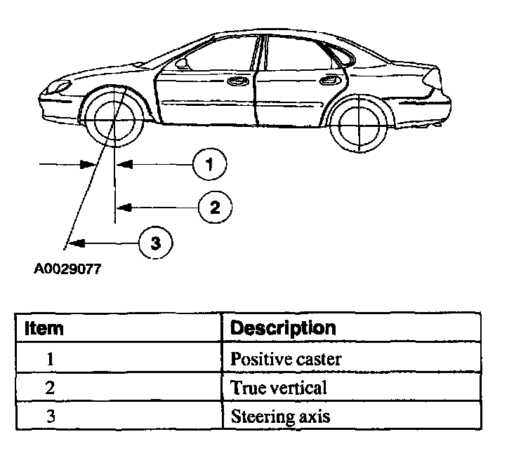 Caster is the deviation from vertical of an imaginary line drawn through the ball joints when viewed from the side. The caster specifications will give the vehicle the best directional stability characteristics when loaded and driven. The caster setting is not related to tire wear.