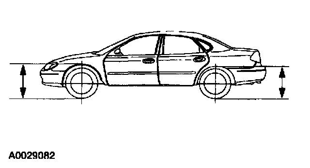 The vehicle ride height can be checked by measuring the distance between the lip of the fender(s) and the ground. The vehicle must be in a level, static ground position with full fluids and the fuel tank at least half full.