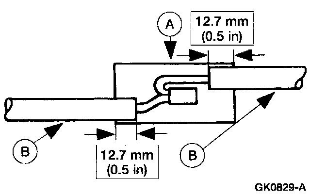 5. Position the (A) heat shrink tube over the (B) wire repair.