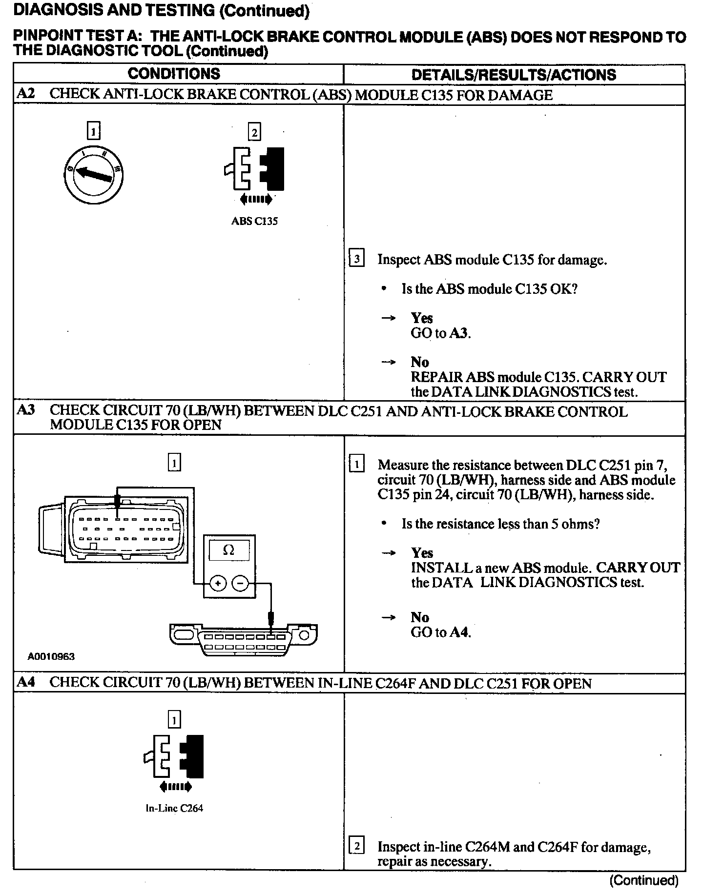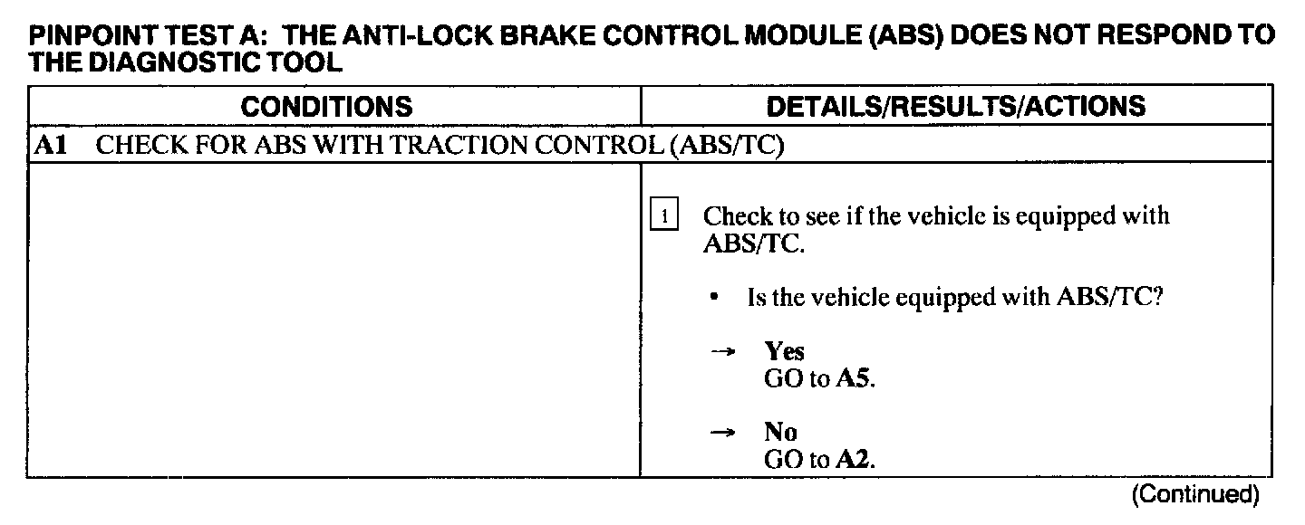 Test A: ABS Control Module Does Not Respond to the Scan Tool