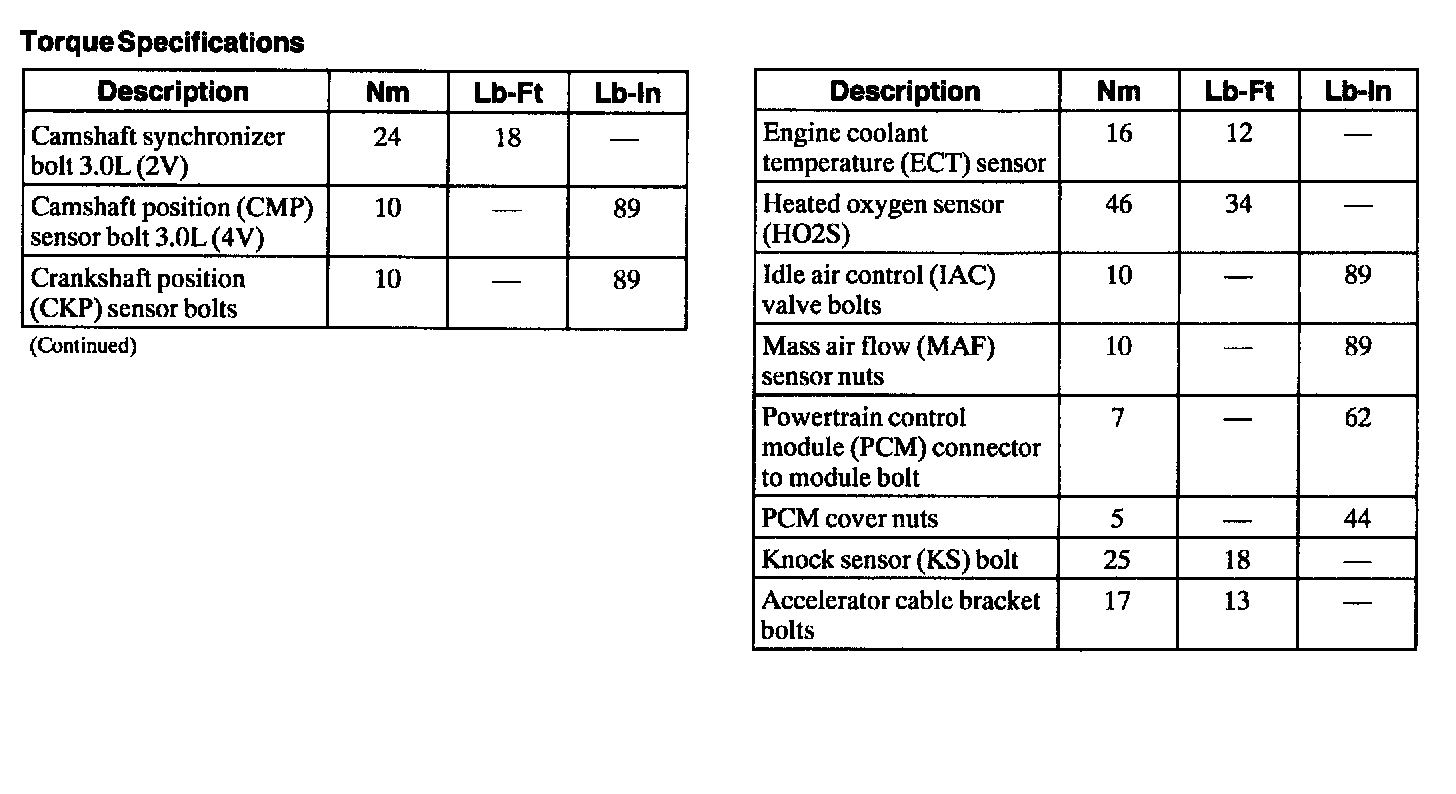 Torque Specifications: