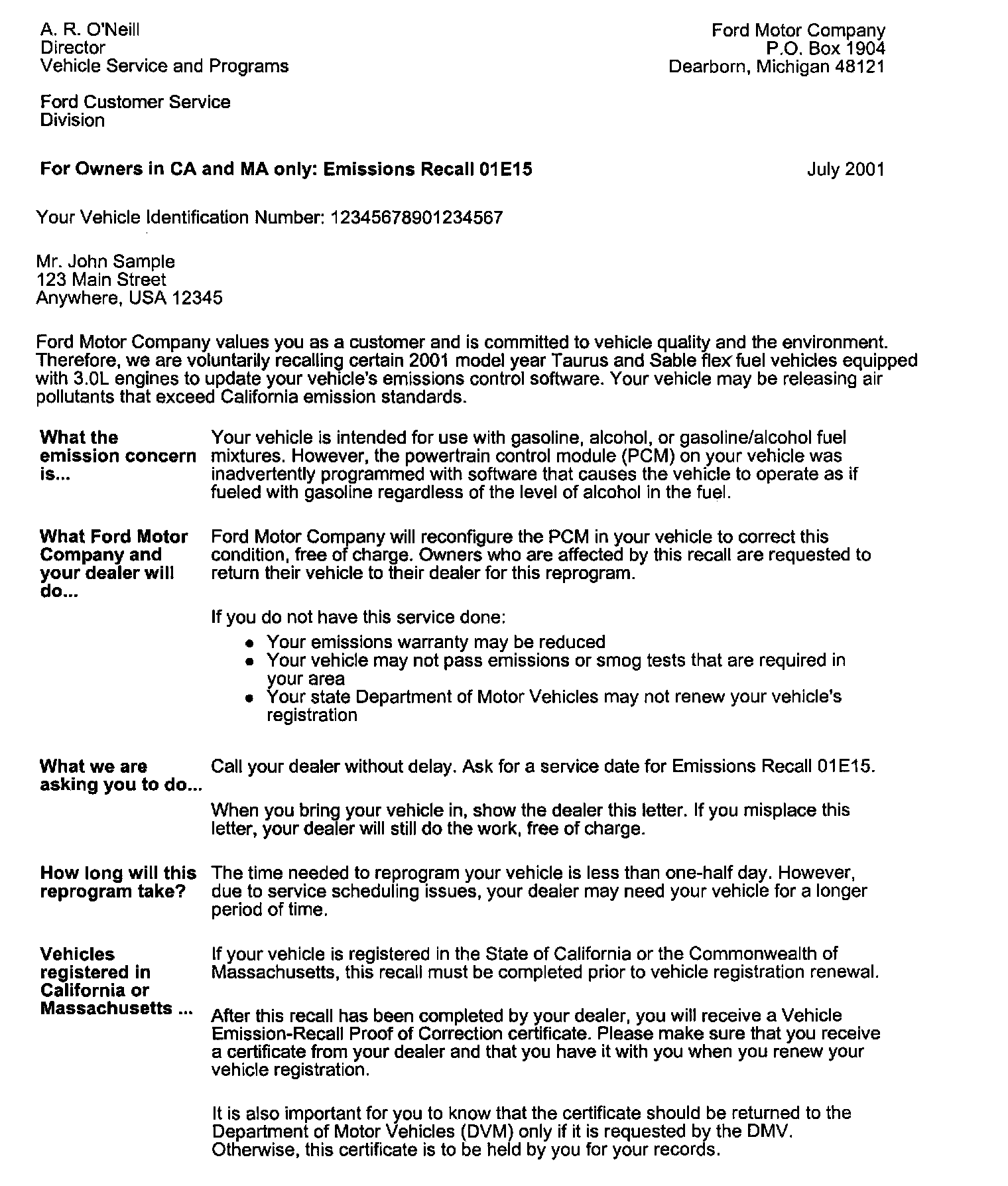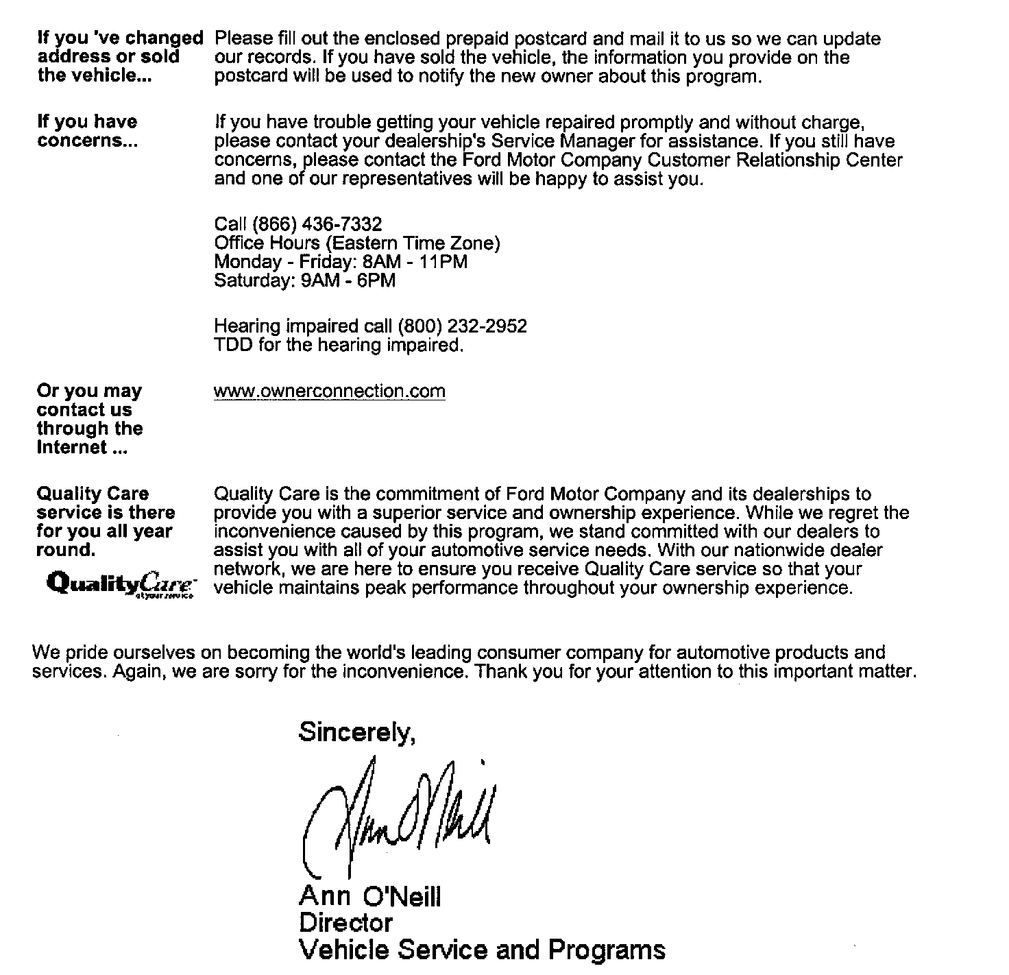 Owner Letter For CA and MA Only