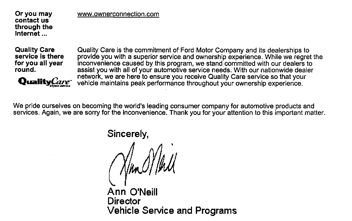 Owner Letter