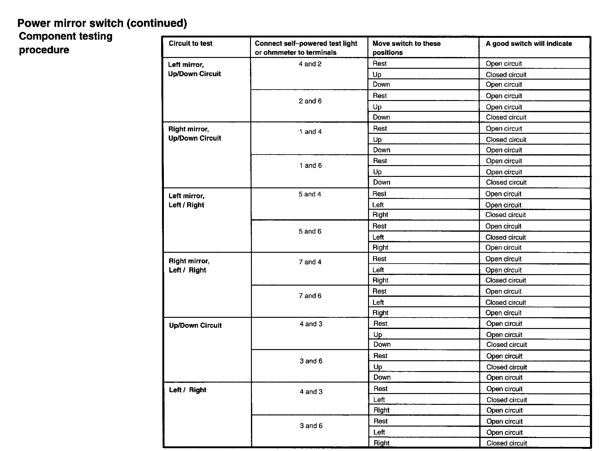 Power Mirror Switch: Testing and Inspection