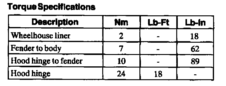 Torque Specifications: