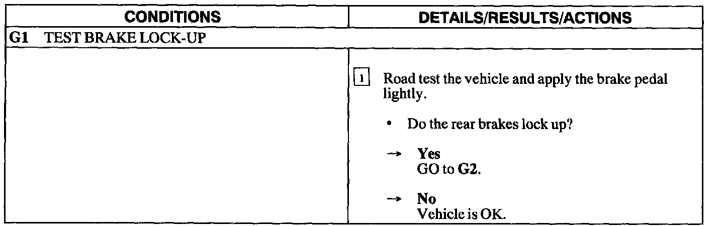 PINPOINT TEST G: BRAKE LOCK-UP DURING LIGHT BRAKE PEDAL FORCE