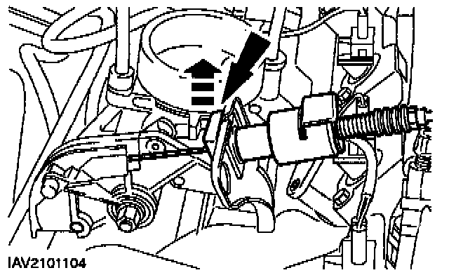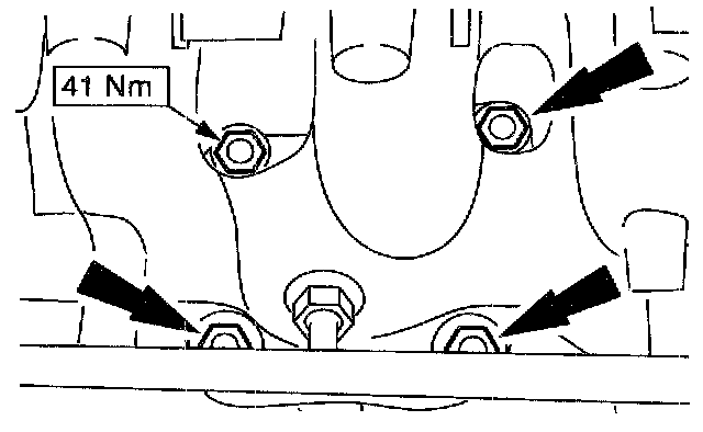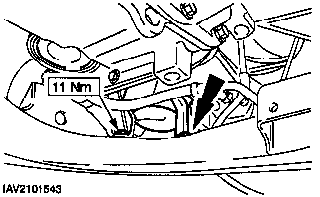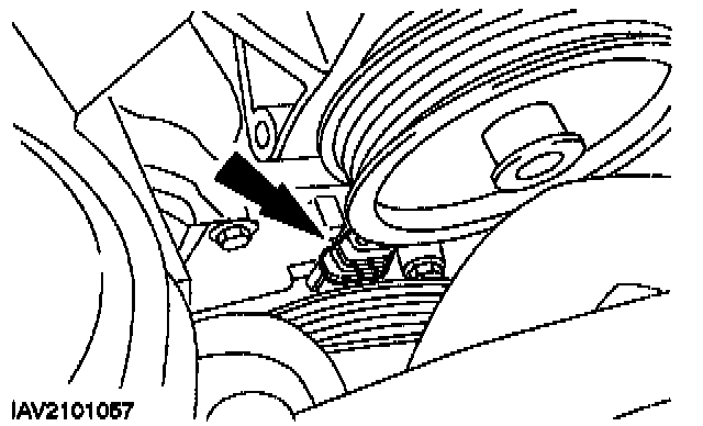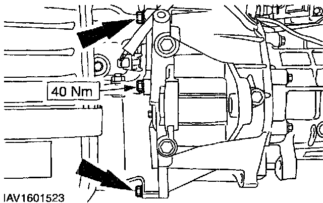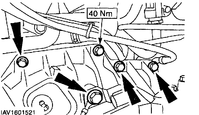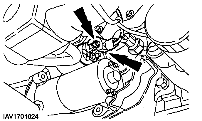 ^ Remove the upper starter motor bolts.