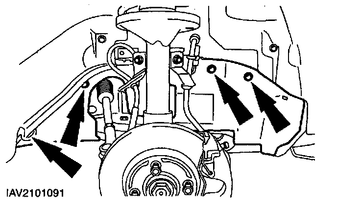 Disconnect the right-hand lower suspension arm (left-hand side shown).