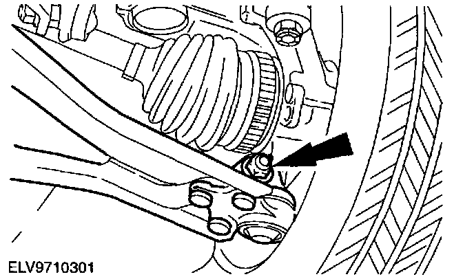 ^ Remove the lower suspension arm ball joint from the spindle carrier.