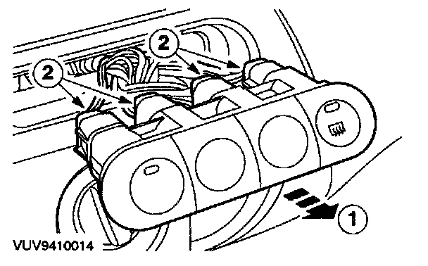 2 Detach the heater control bezel from the clips.