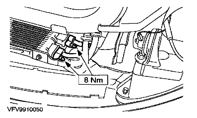 7. Remove upper refrigerant line from the A/C condenser.