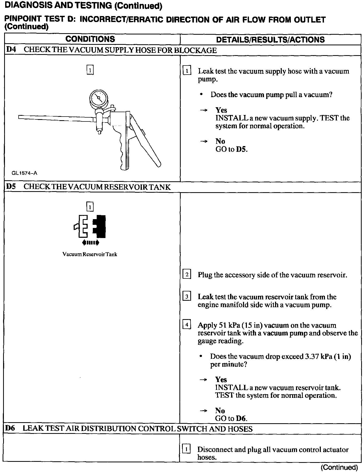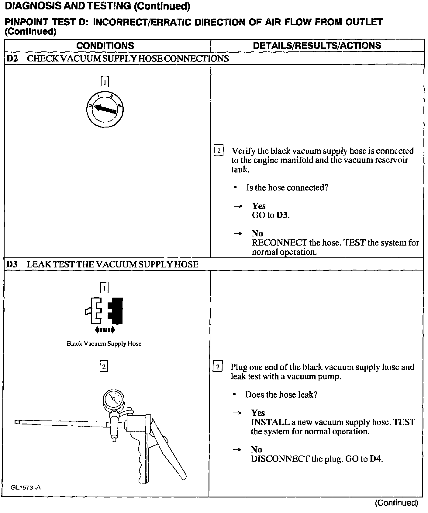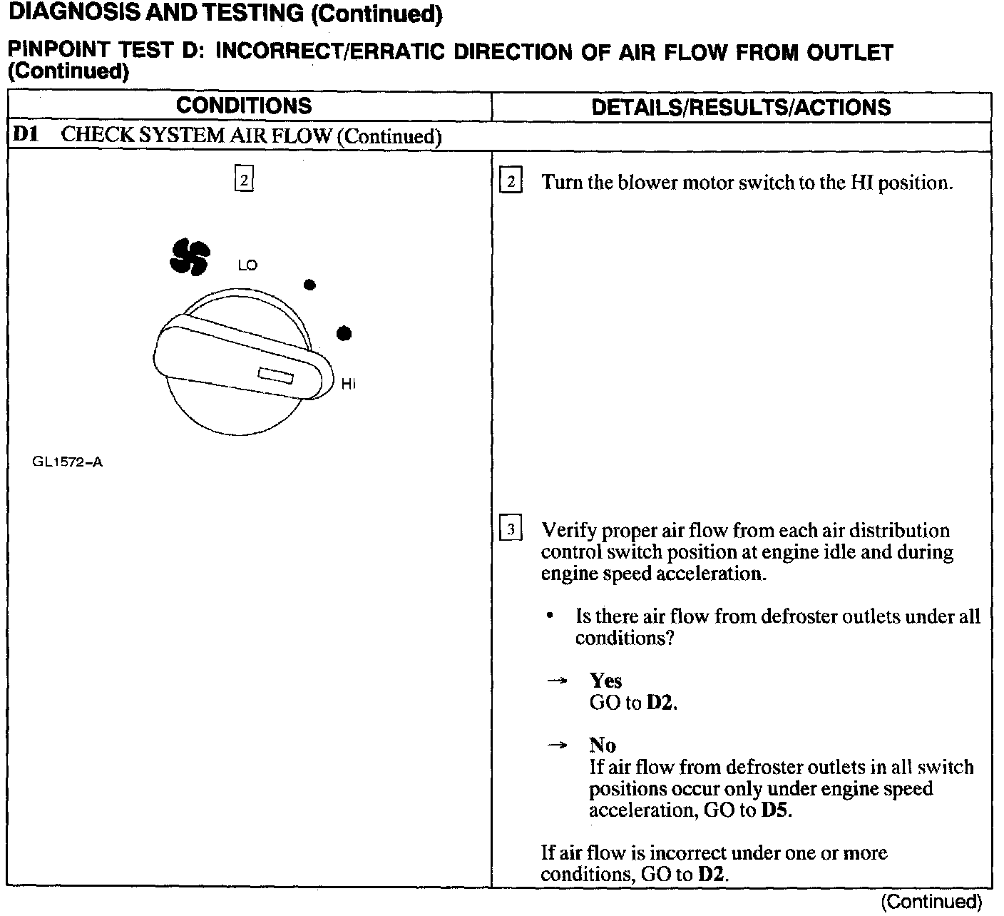 Test D: Incorrect/Erratic Direction Of Air Flow From Outlet