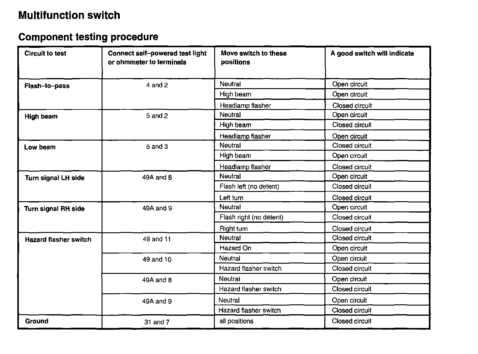 Turn Signal Switch: Testing and Inspection