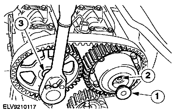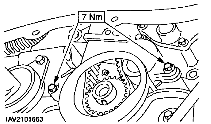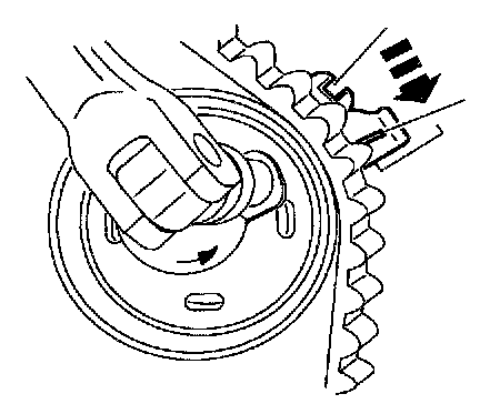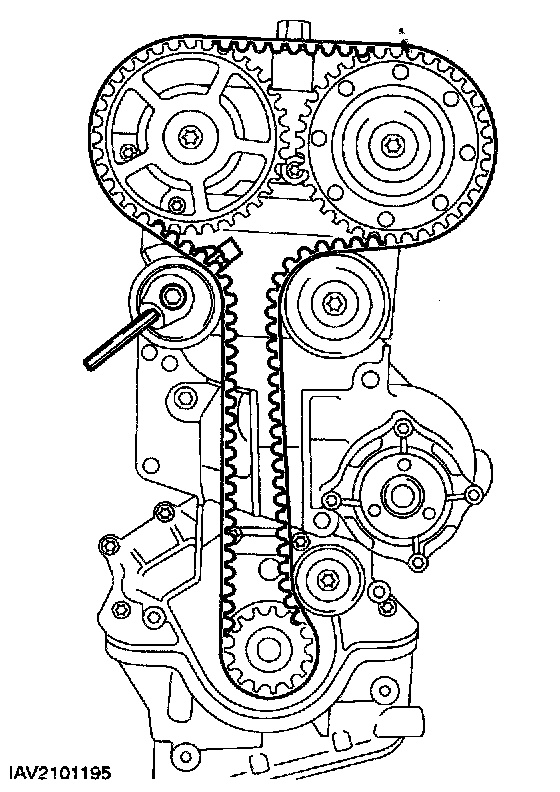 6. NOTE: Incorrect timing belt tension will cause incorrect valve timing.