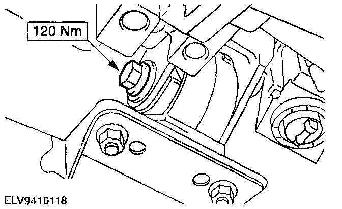 12. Loosen the center bolt of the left-hand engine support insulator two turns.