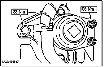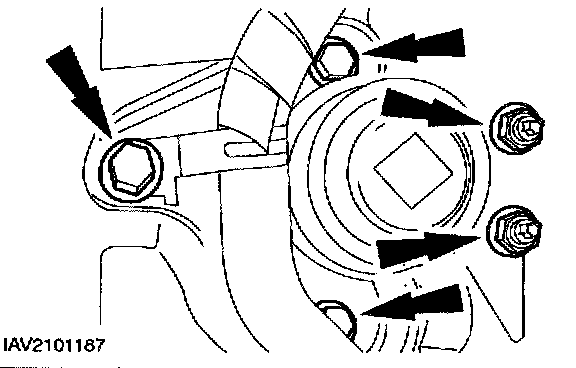 19. Remove the center part of the engine front cover/front engine mounting bracket.