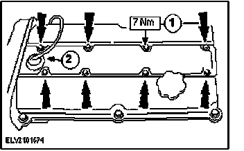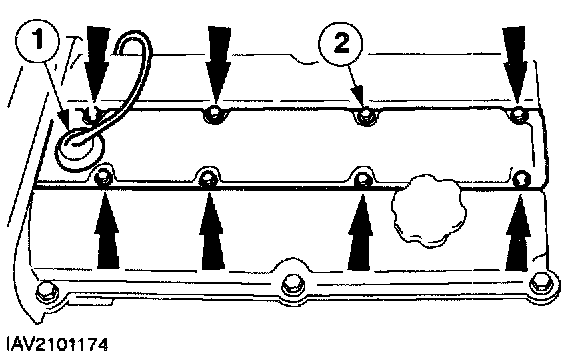 15. NOTE: Valve cover tightening sequence: From the inside outwards, working diagonally.