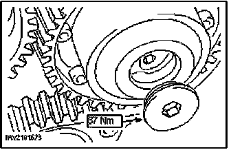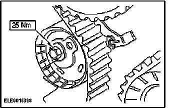 25. NOTE: To loosen the camshaft pulleys, hold the camshafts by the hexagon.