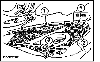 1. Remove the blanking plug from the exhaust camshaft pulley.