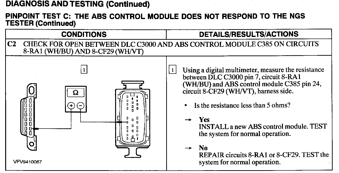 Test C: ABS Control Module Does Not Respond to the NGS Tester