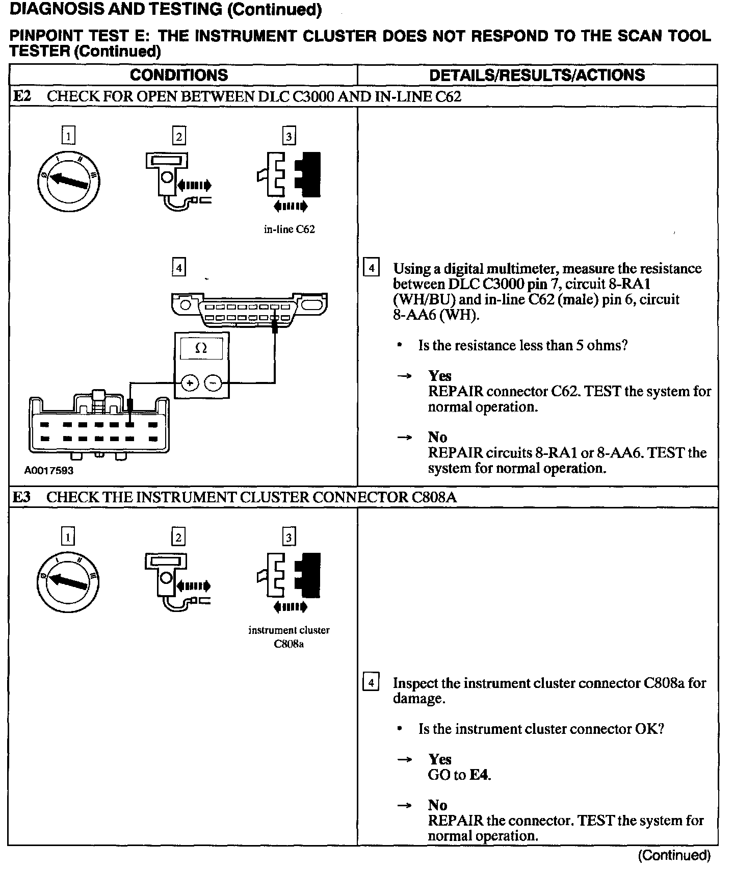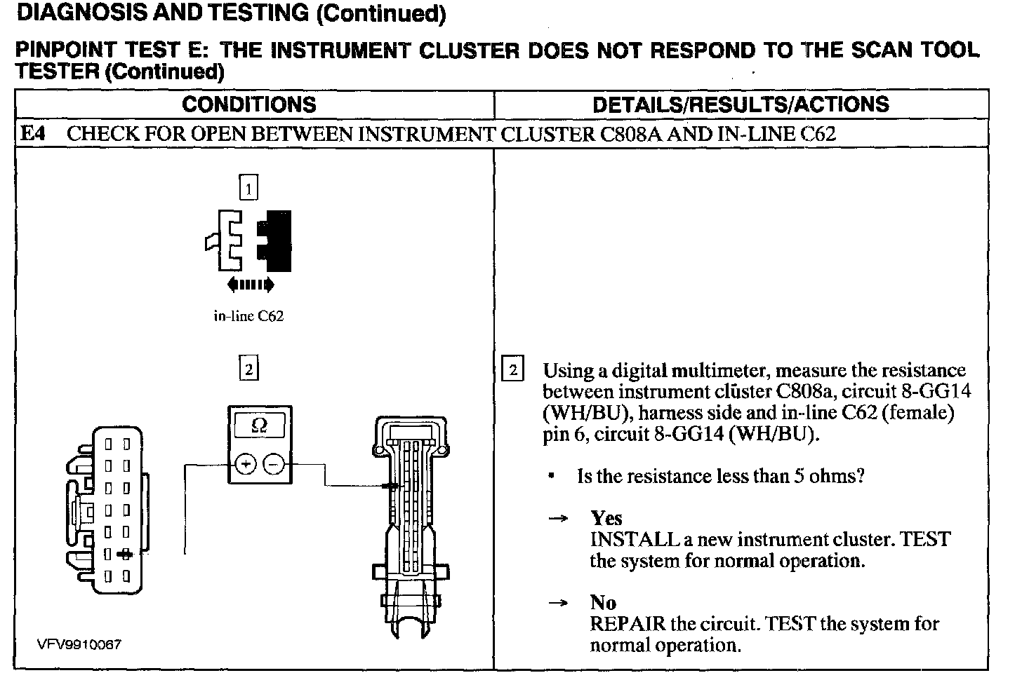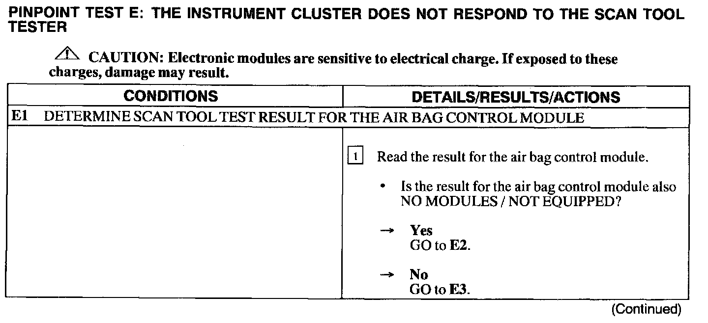 Test E: Instrument Cluster - No Response to Scan Tool Tester