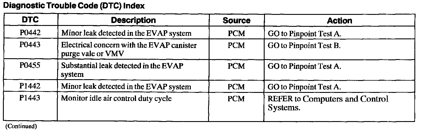 DTC Index P0442 - P1443: