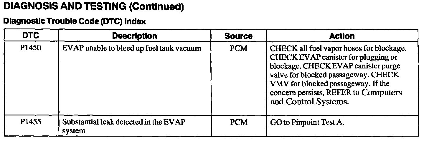 DTC Index P1450 - P1455: