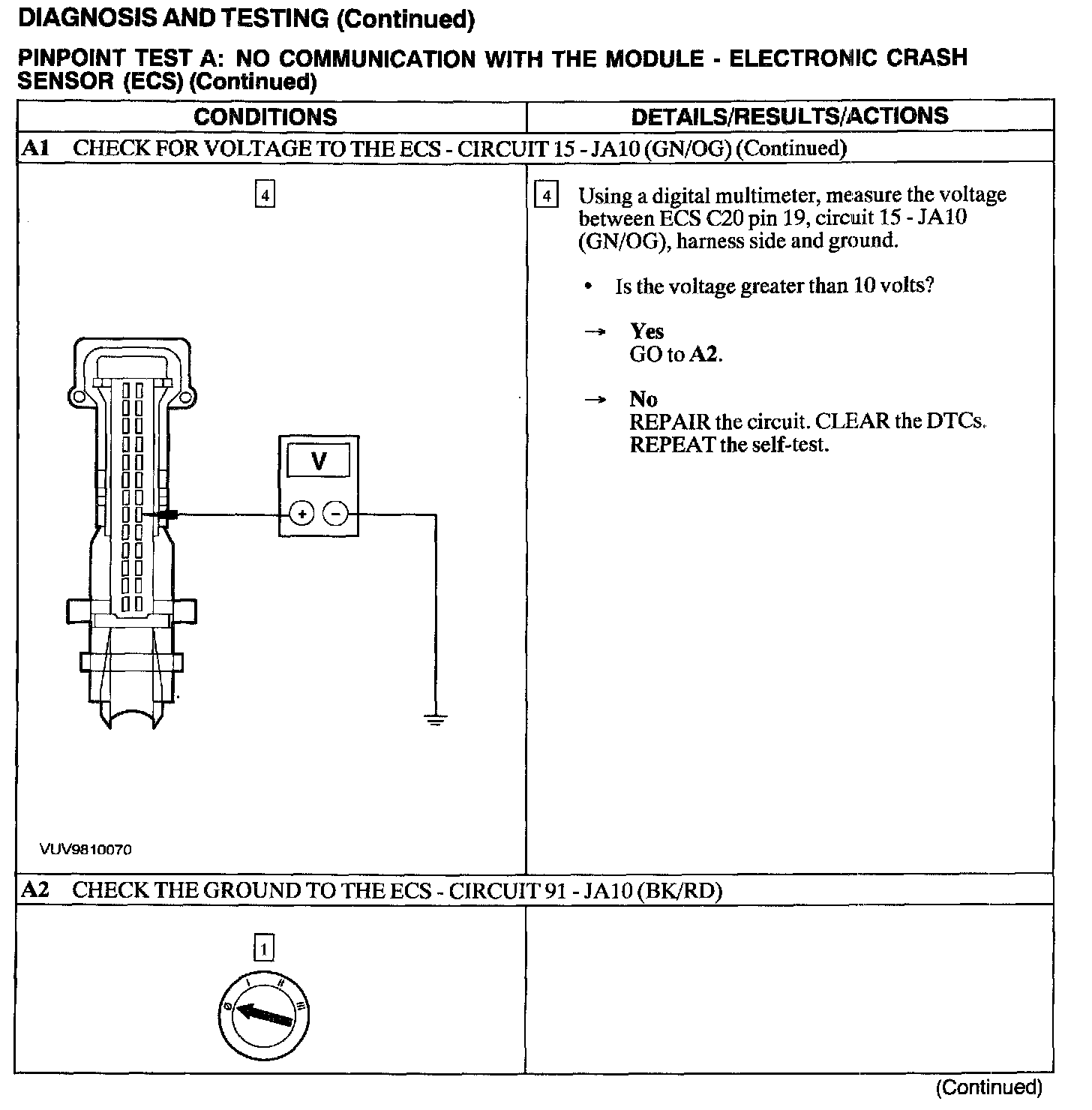 Test A: No Communication With the Module - Electronic Crash Sensor (ECS)