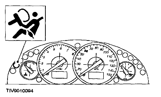The electronic air bag control module also performs continual system diagnostics. In the event of a fault being detected the warning light is illuminated either constantly or intermittently. The behavior of the warning light depends on the type of fault present. The warning light is located in the instrument cluster.