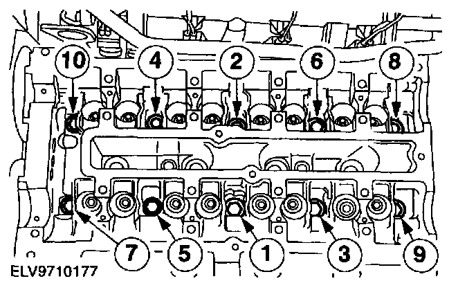 - Stage 3: Tighten bolt 1 through 10 to 90 degrees.