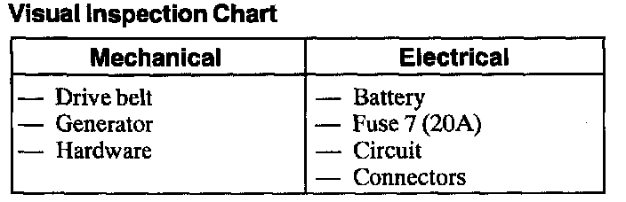 1. Verify the customer concern by operating the system.Visual Inspection Chart: