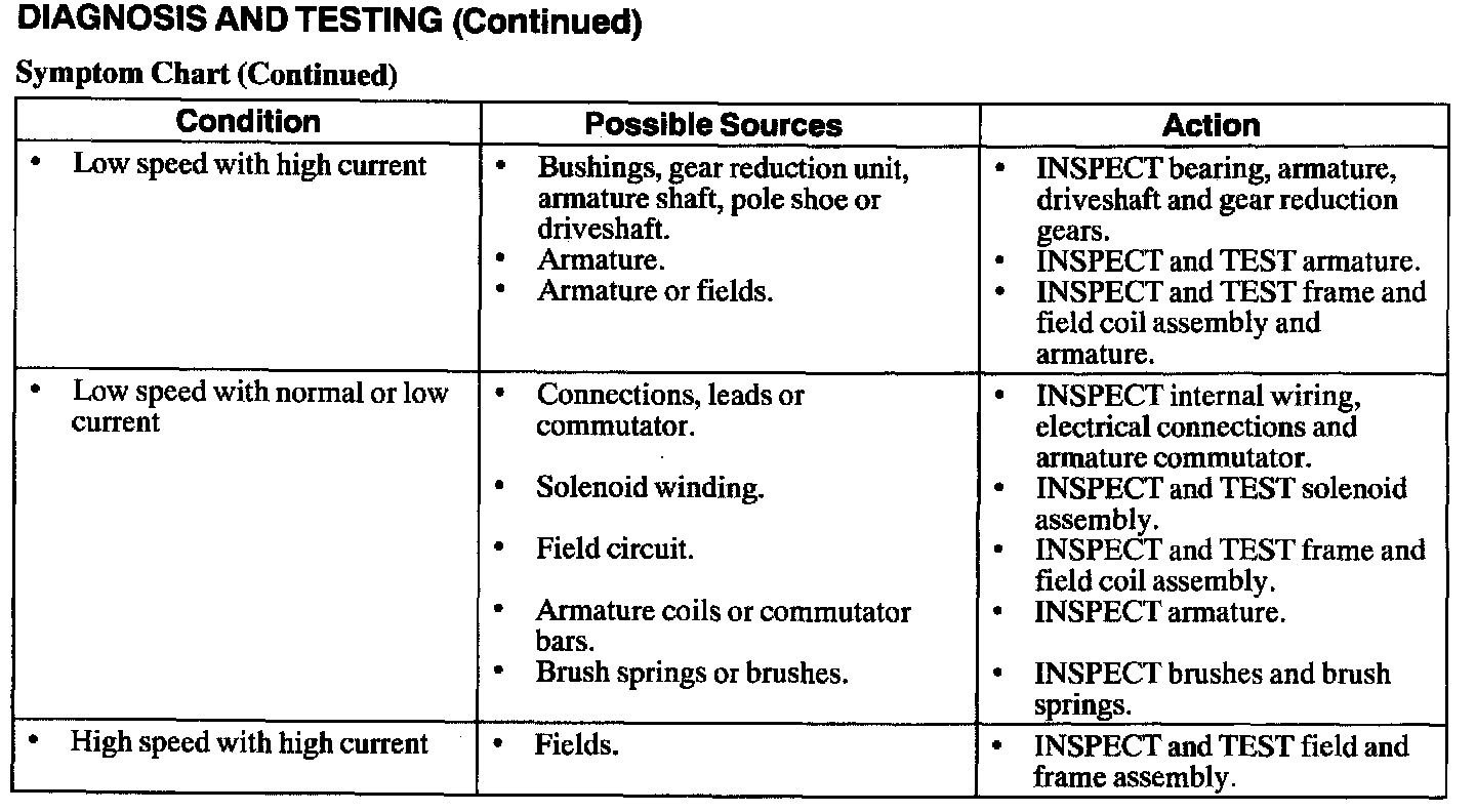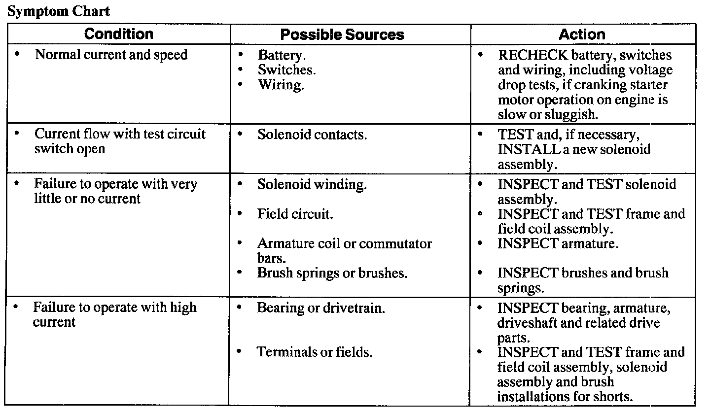 Symptom Chart - Starter Motor - No-Load Test Result