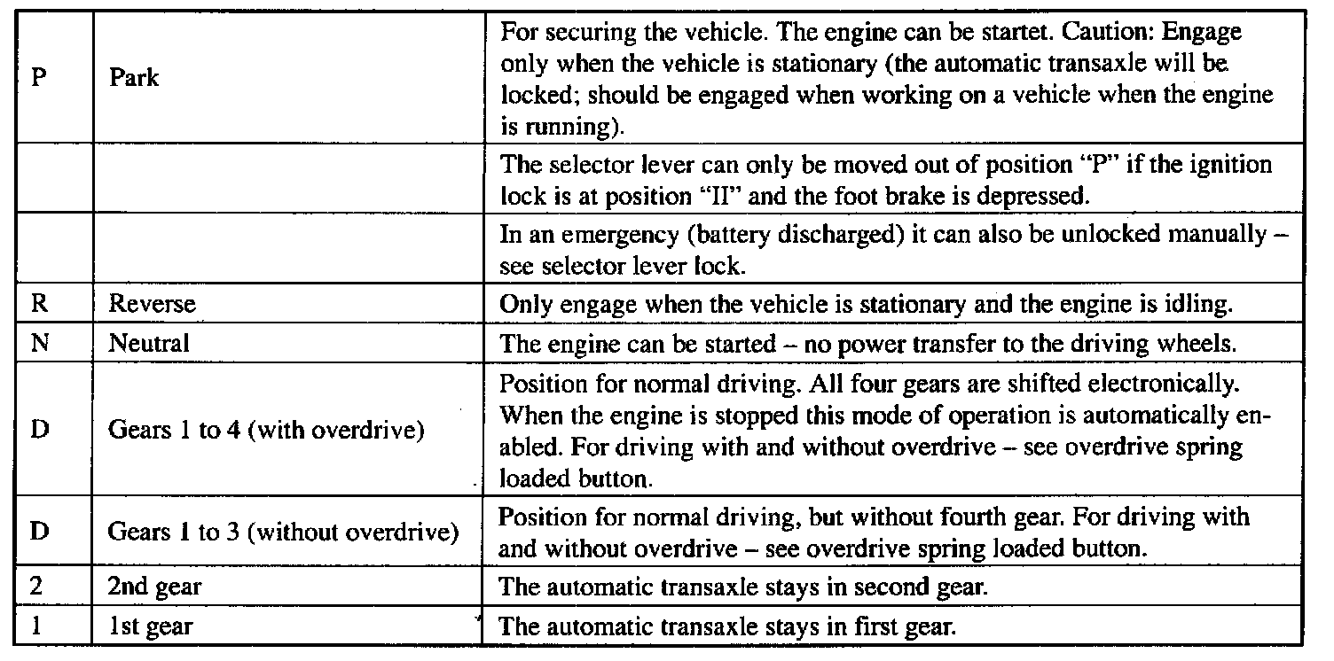 Selector Lever Positions