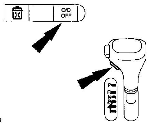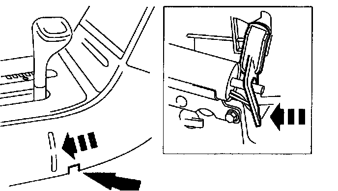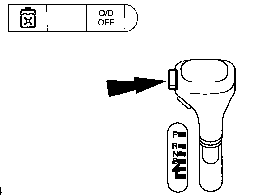 To move the lever from park position and to engage "R", "2", or "P", the ignition lock must be set to "11", the foot brake must be depressed and the spring loaded side button pressed in.