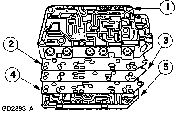 13. NOTE: Match the solenoid valve body gasket to passages.