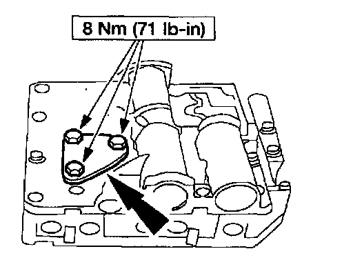 3. Install the intermediate and overdrive accumulator valve plug retaining plate.