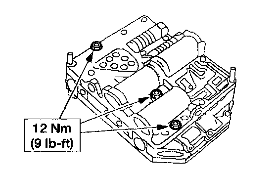 Remove the two solenoid valve body bolts and the solenoid valve body.