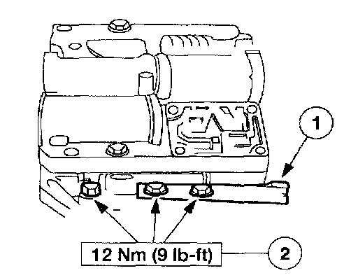 9. Starting with the bolts in the middle and working outward, install the accumulator body transfer plate.