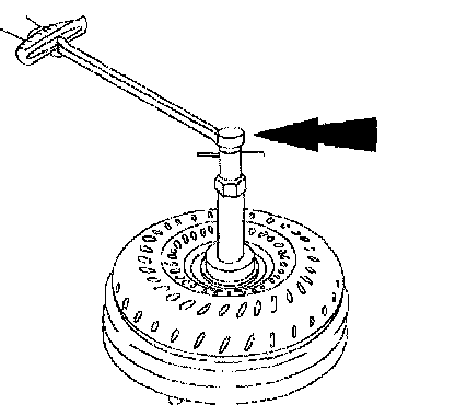 1. Install special tools into the turbine splines in the torque converter.
