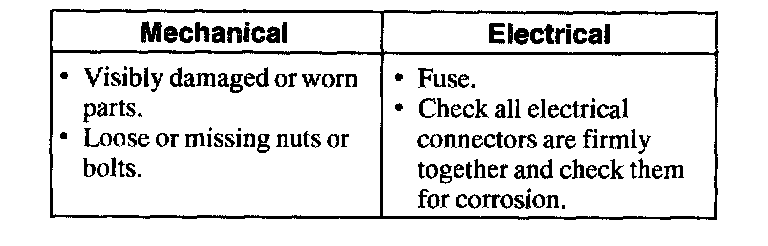 2. If the concern is not clearly understood carry out a road test and perform visual checks using the table.