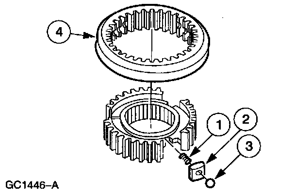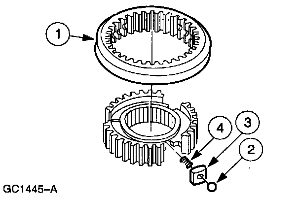 1. CAUTION: Use care when disassembling the synchronizer assembly. The detent balls are spring loaded and may be ejected from the assembly.